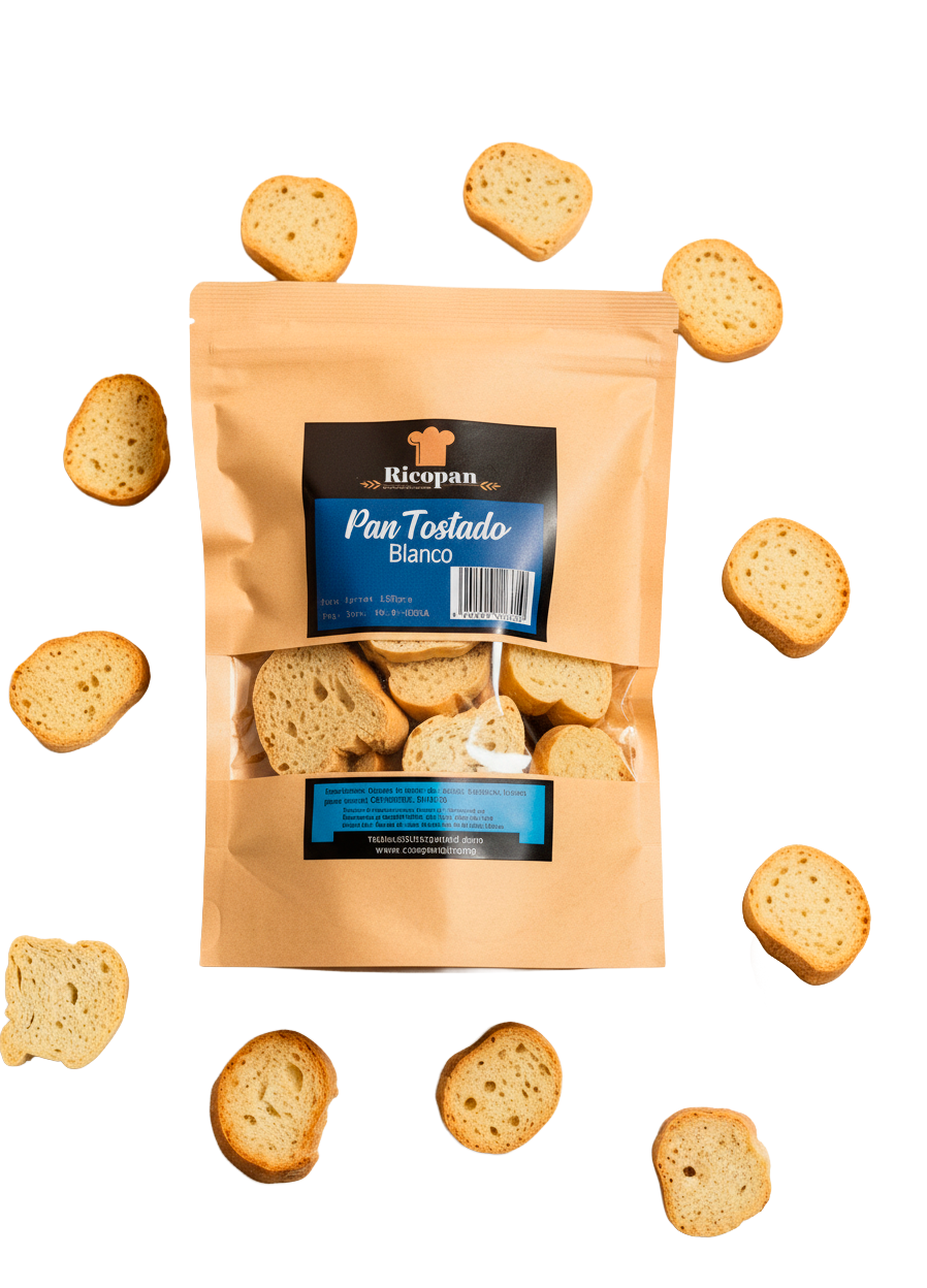 En Ricopan, nos enorgullecemos de ofrecer productos artesanales elaborados con la más alta calidad y frescura. Nuestros panes tostados, crutones, palitos y alfajores son bajos en grasa, sin conservantes ni colorantes artificiales y tienen una duración de 2 meses.